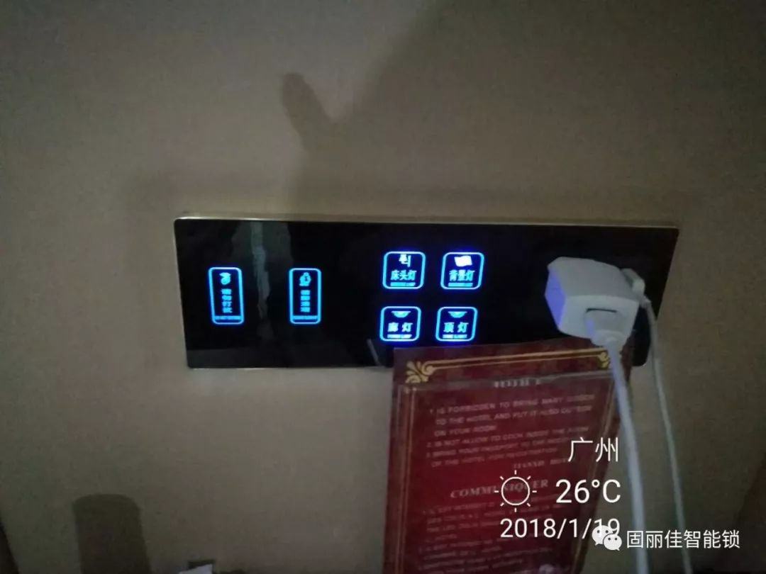 采用固麗佳智能門牌觸摸開關(guān)——LED背光觸摸式燈位指示一目了然。方便夜間識別,提高酒店高效、便捷的服務(wù)質(zhì)量,提升了顧客滿意度!